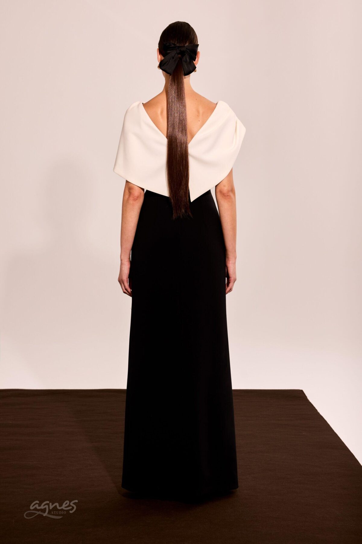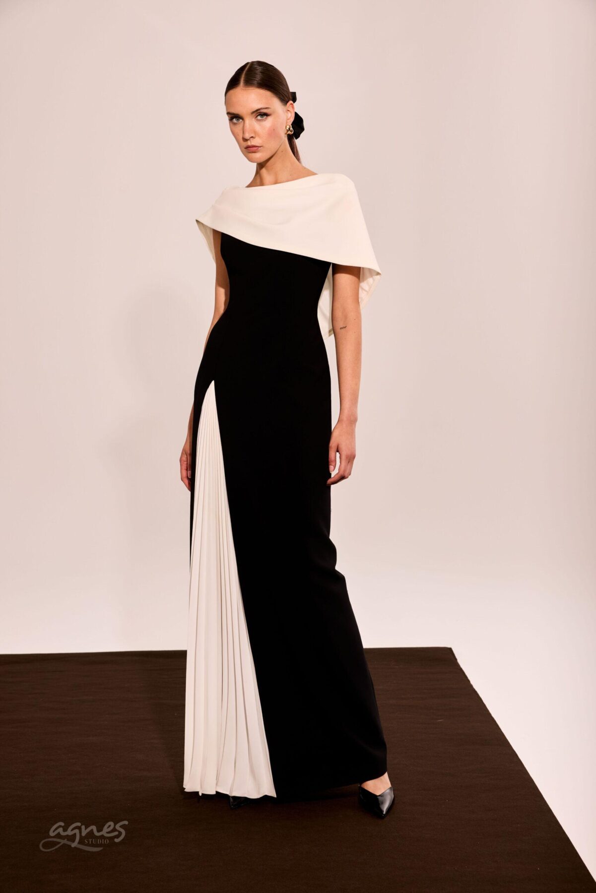 Společenské šaty CARLA RUIZ černo-bílé plesové dlouhé s klínem plisé