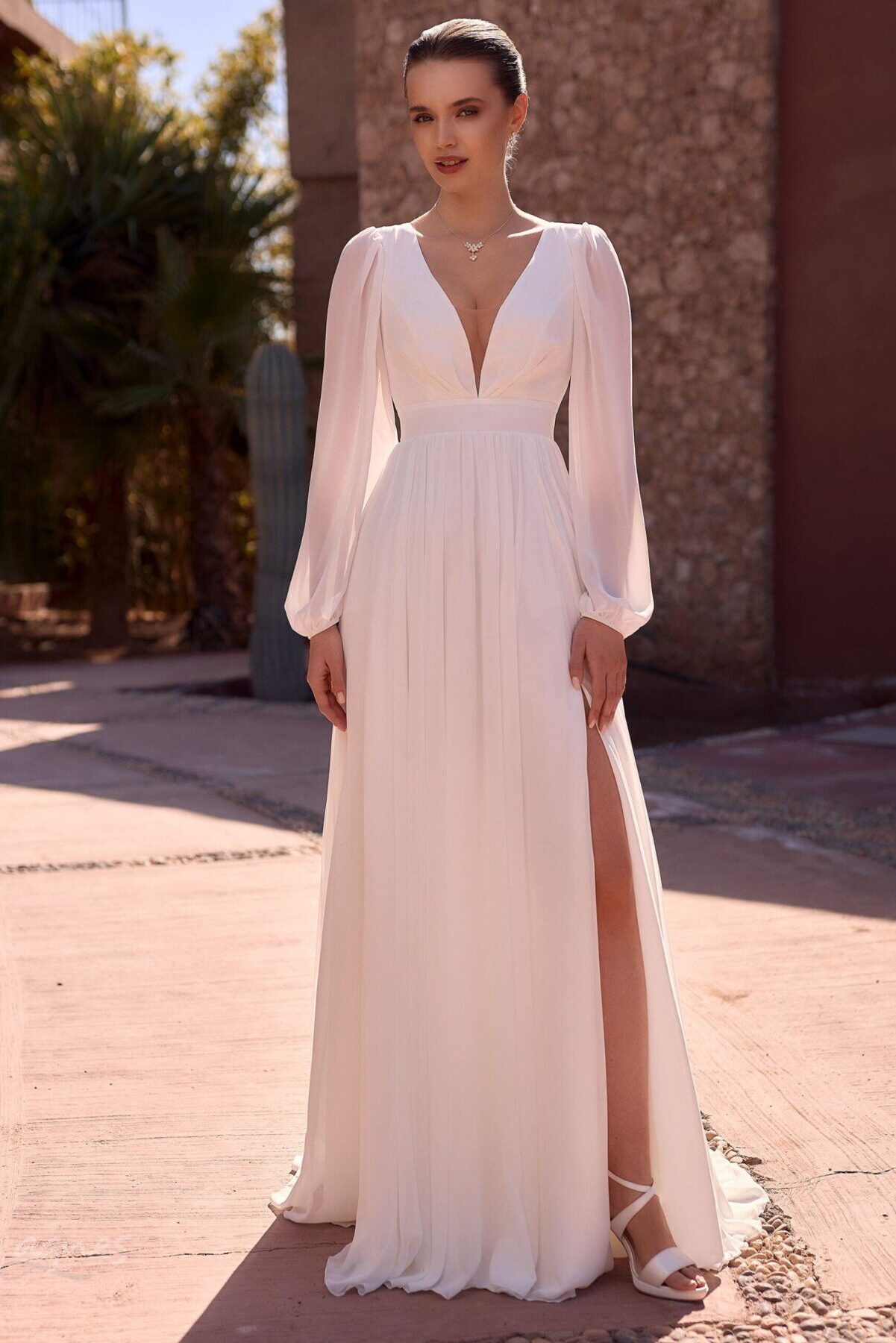 Elegantní svatební šaty áčkového střihu z vysoce kvalitního šifonu