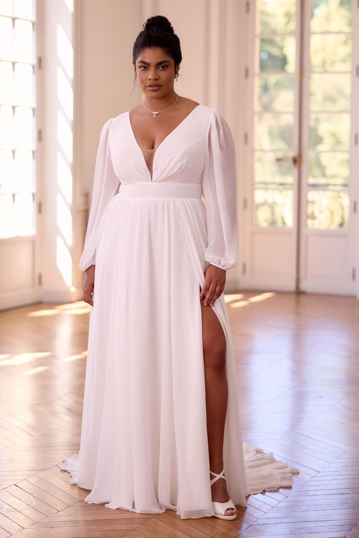 Elegantní svatební šaty áčkového střihu z vysoce kvalitního šifonu