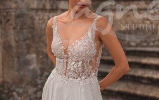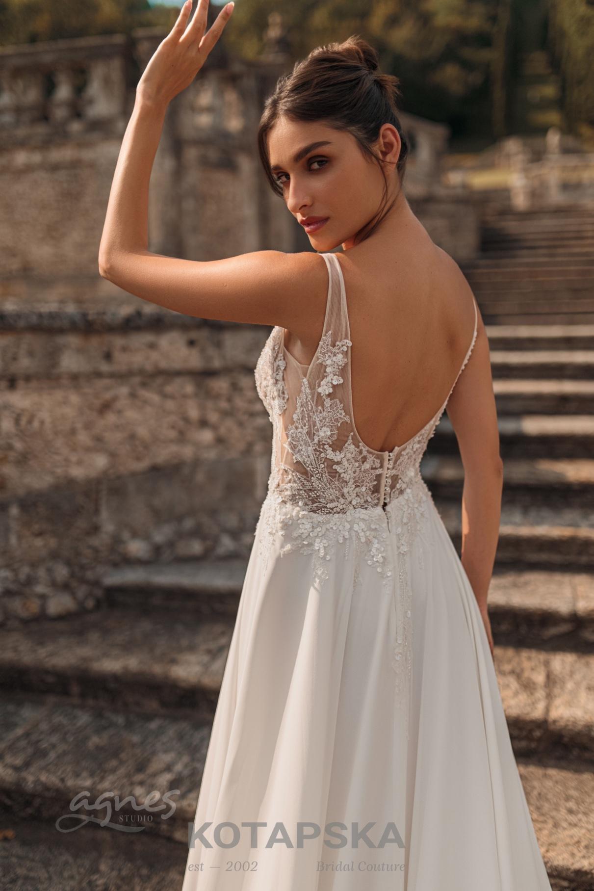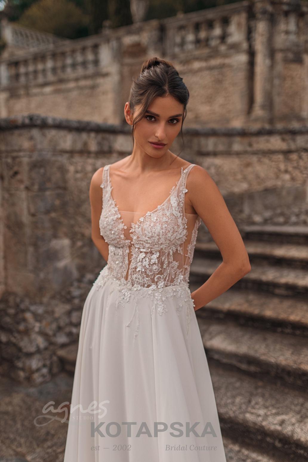 Splývavé šaty na ramínka, vrchní díl pošitý jemnou krajkou