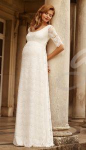 Tato značka Vám nabízí pohodlné těhotenské svatební šaty jak na tradiční pohádkovou svatbu, tak i na moderní svatbu vintage boho stylu. Tyto svatební šaty v jemné krajce s dlouhým rukávem se perfektně přizpůsobí Vašim rostoucím křivkám, budou Vám pohodlné a s výstřihem do U, který se Vám bude líbit. Mnohé celebrity z Anglie oblékly svatební šaty pro těhotné Tiffany Rose na jejich nejkrásnější den v životě.